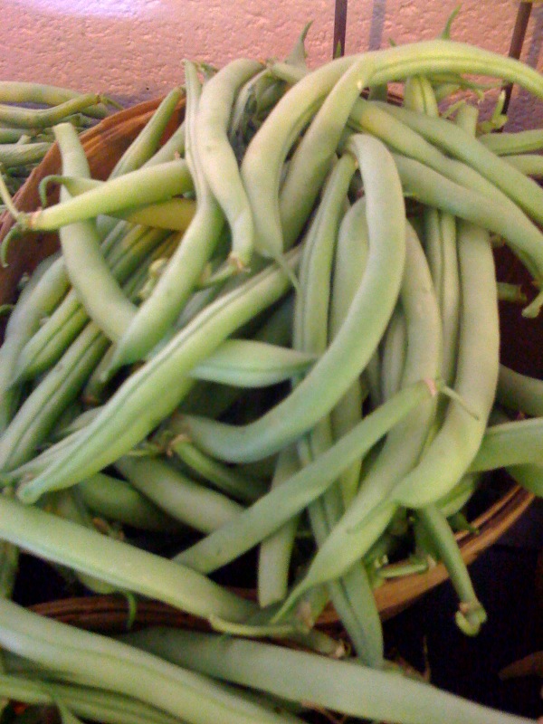 I moved in close and leaned forward just a little, then picked up a single fresh green bean. I held it to my nose and breathed in, but was disappointed when I couldn’t quite pull out the fragrance that I remembered. I glanced around and seeing no one nearby, snapped that bean in half with one hand.